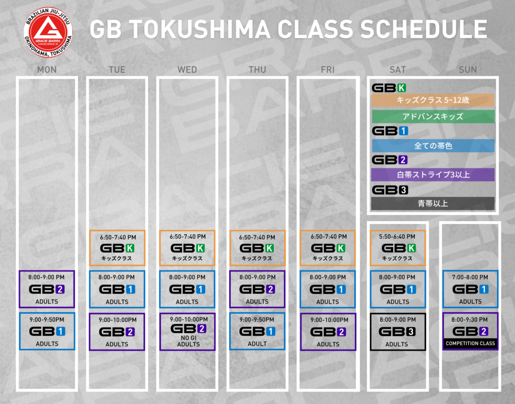 ・日曜19:00 GB1クラス。GB1クラスが週7日に。平日練習通いにくい人はぜひご参加下さい。